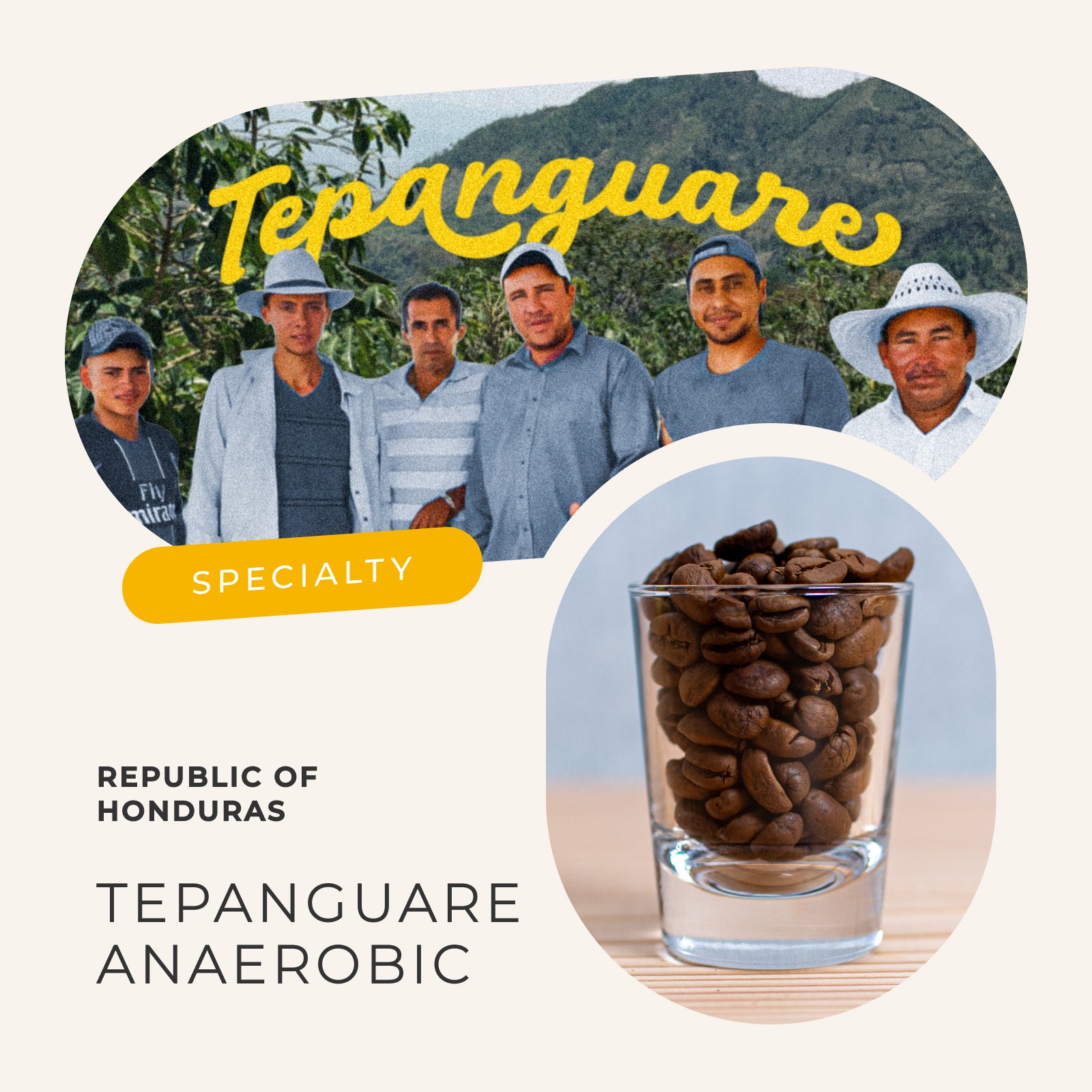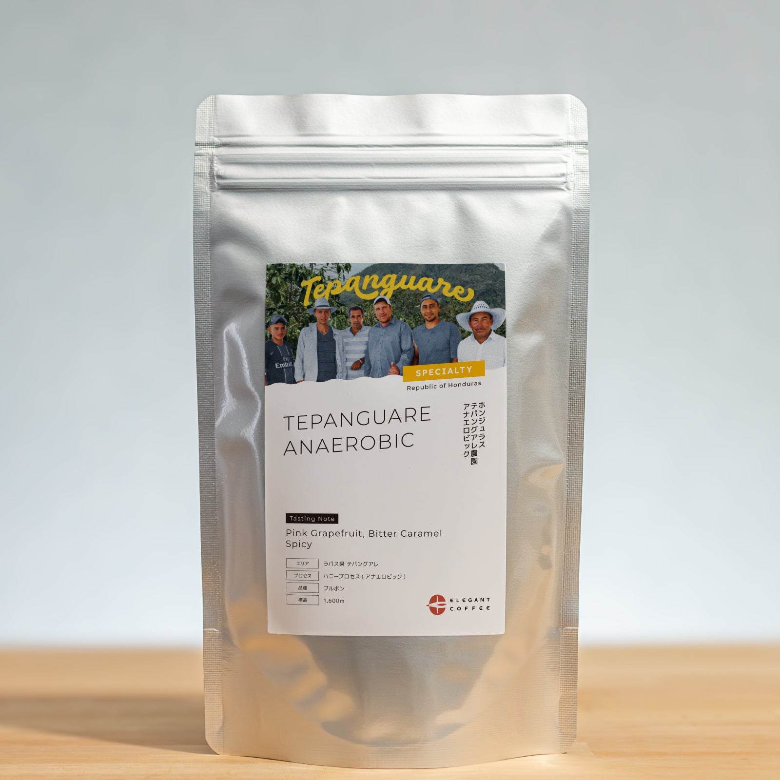 ホンジュラス・ラパス県テパングアレの高地にあるテパングアレ農園。祖母から農園を受け継いだアベル・メヒア氏が、生産と精製の両面を担い、近隣農家の精製も支えています。収穫したチェリーを密閉タンクで嫌気性発酵(アナエロビック)させた後、ウォッシュド精製を行い、屋根付きのサスペンディド・パティオで約3週間かけてゆっくり乾燥。スロードライのおかげで生豆へのダメージが少なく、柑橘の明るさとキャラメルのような甘さが調和した、クリーンで立体的な風味に仕上がっています。